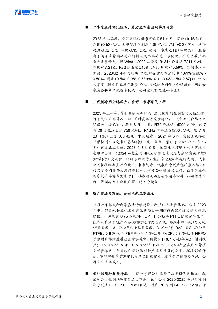 国海证券:永和股份(605020)-2023年中报点评:二季度盈利环比改善,含氟聚合物放量驱动成长.pdf