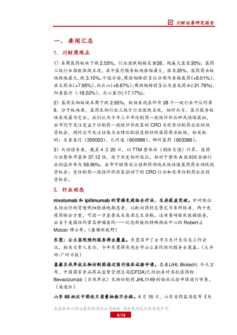 川财证券:医药生物行业周报:短期调整不改长期看好,重点关注年报及一季报.pdf