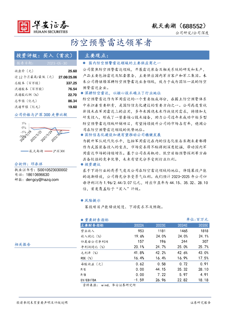 华安证券:航天南湖(688552)-防空预警雷达领军者.pdf