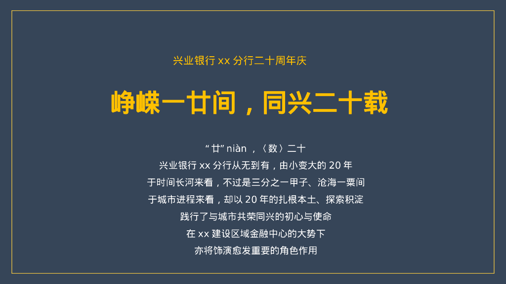 银行二十周年庆系列“峥嵘一廿间·同兴二十载”主题活动策划方案.ppt