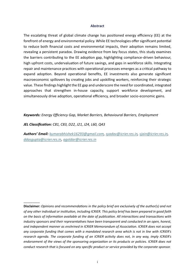印度国际经济关系研究理事会(ICRIER):2025年印度制造业能源效率的障碍、驱动因素和技能需求报告(英文版).pdf