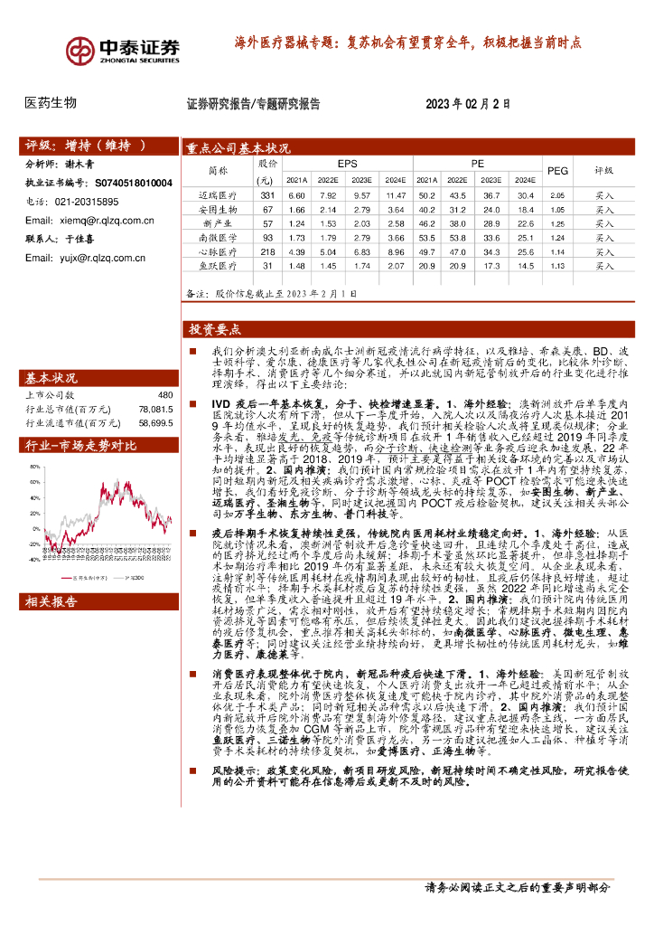 中泰证券:海外医疗器械专题:复苏机会有望贯穿全年,积极把握当前时点.pdf