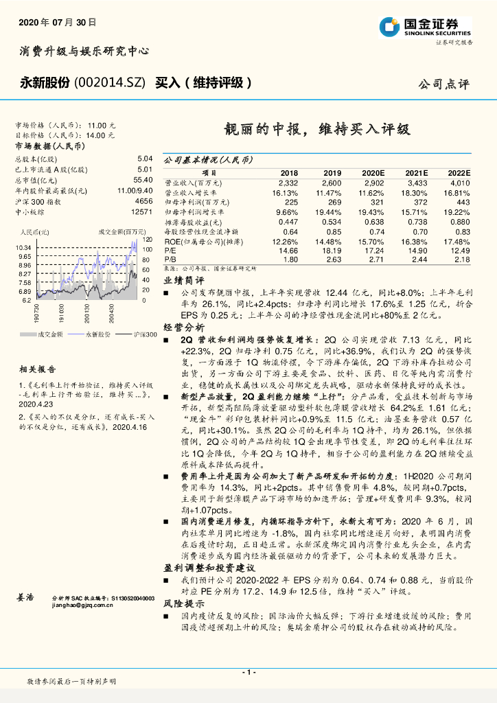 国金证券:永新股份(002014)-靓丽的中报,维持买入评级.pdf