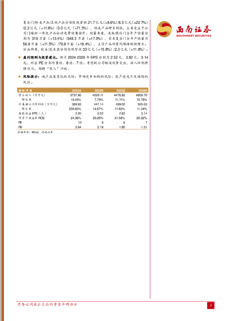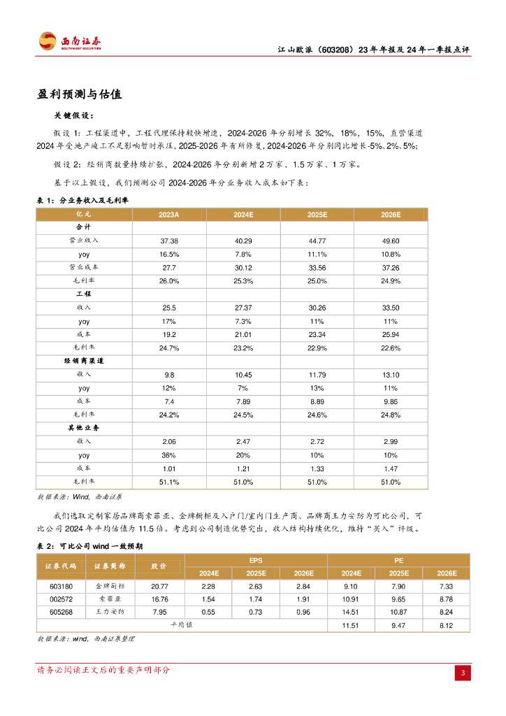 西南证券:江山欧派(603208)-23年年报及24年一季报点评:Q1高基数下增长暂时承压,渠道结构持续优化.pdf