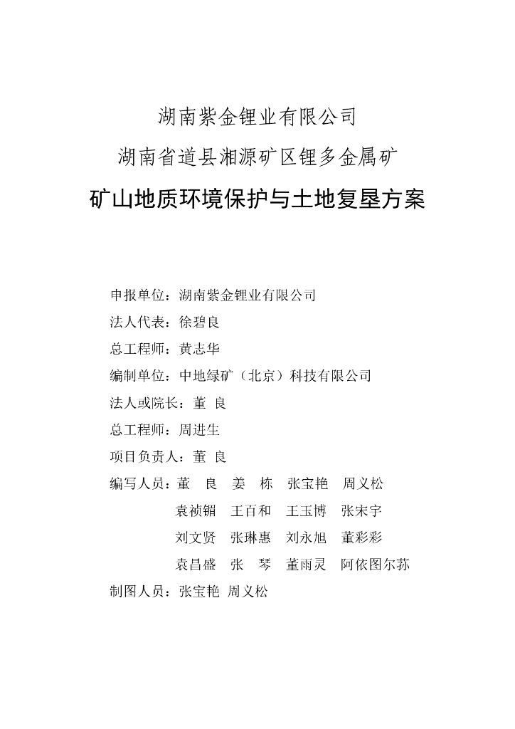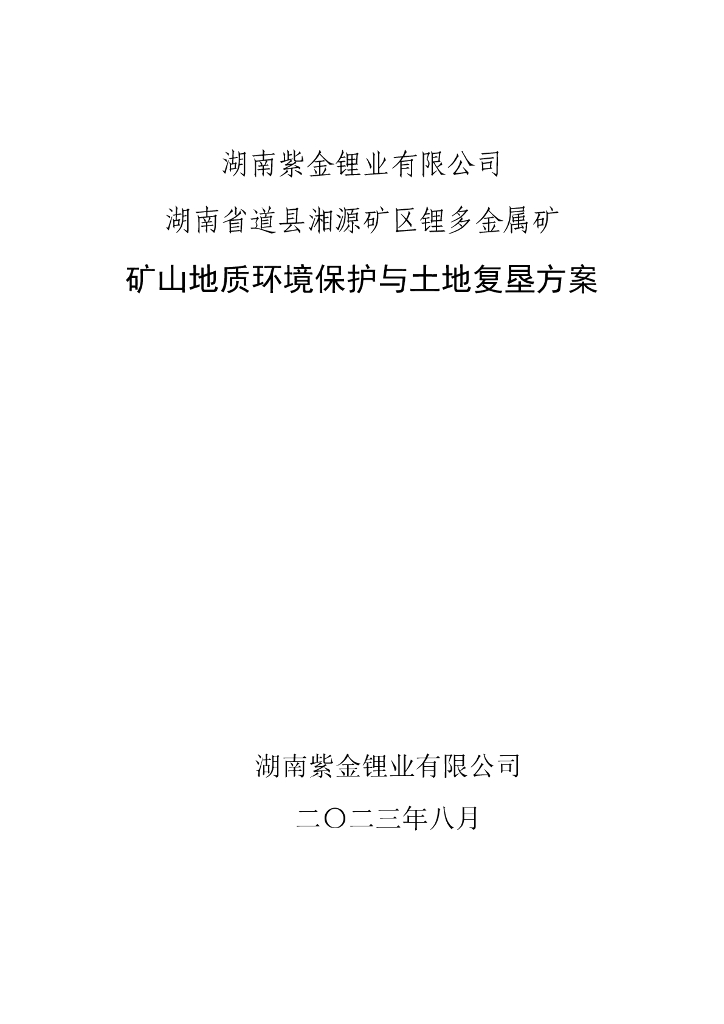 湖南紫金锂业有限公司湖南省道县湘源矿区锂多金属矿矿山地质环境保护与土地复垦方案.pdf