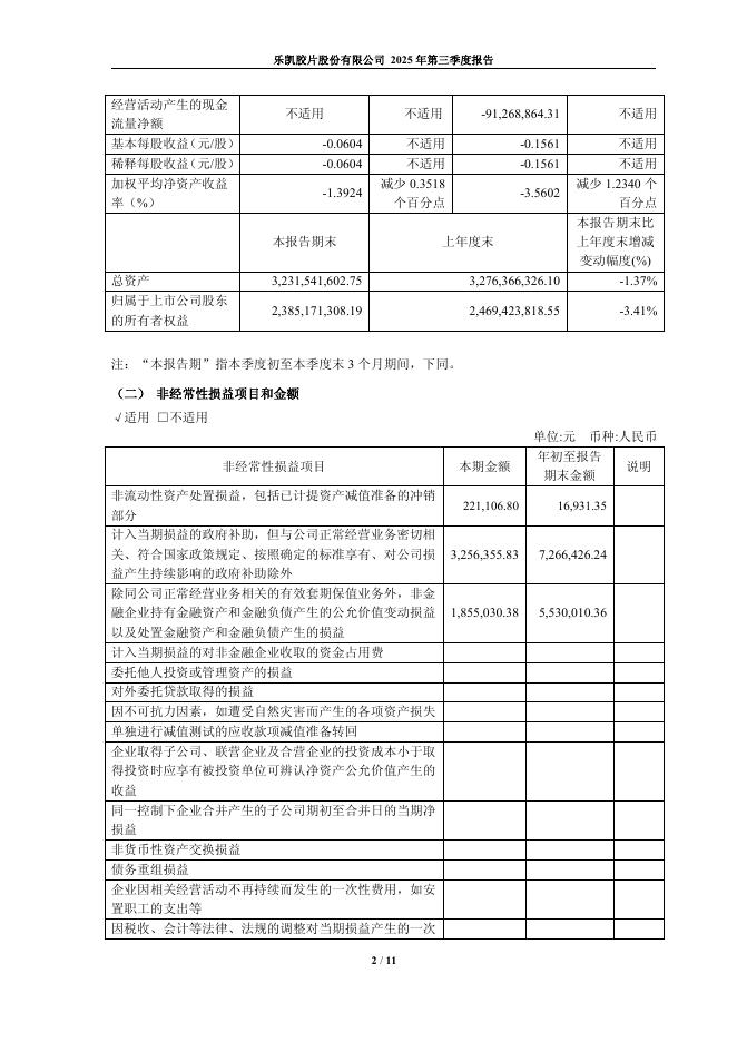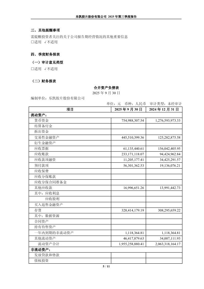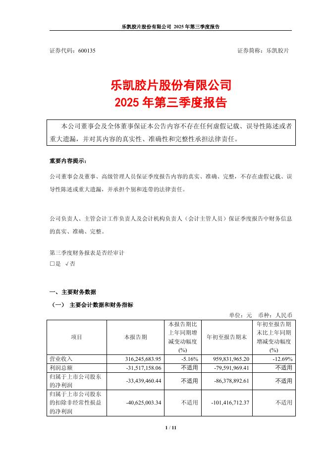 600135-乐凯胶片:乐凯胶片股份有限公司2025年第三季度报告.pdf