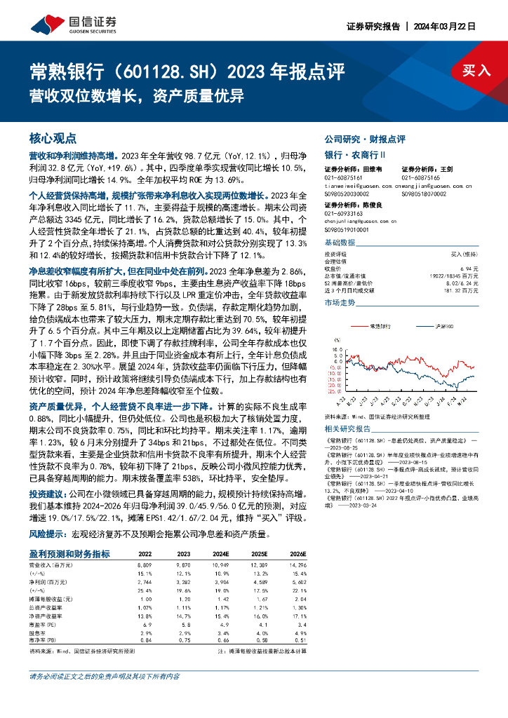 国信证券:常熟银行(601128)-2023年报点评:营收双位数增长,资产质量优异.pdf