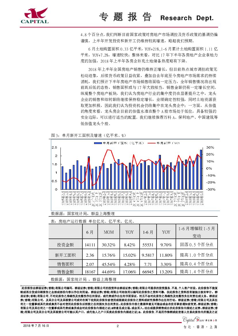 群益证券:2018年1-6月大陆房地产开发与销售数据点评:开发投资增速小幅回落,新开工和房产销售增速稳定.pdf