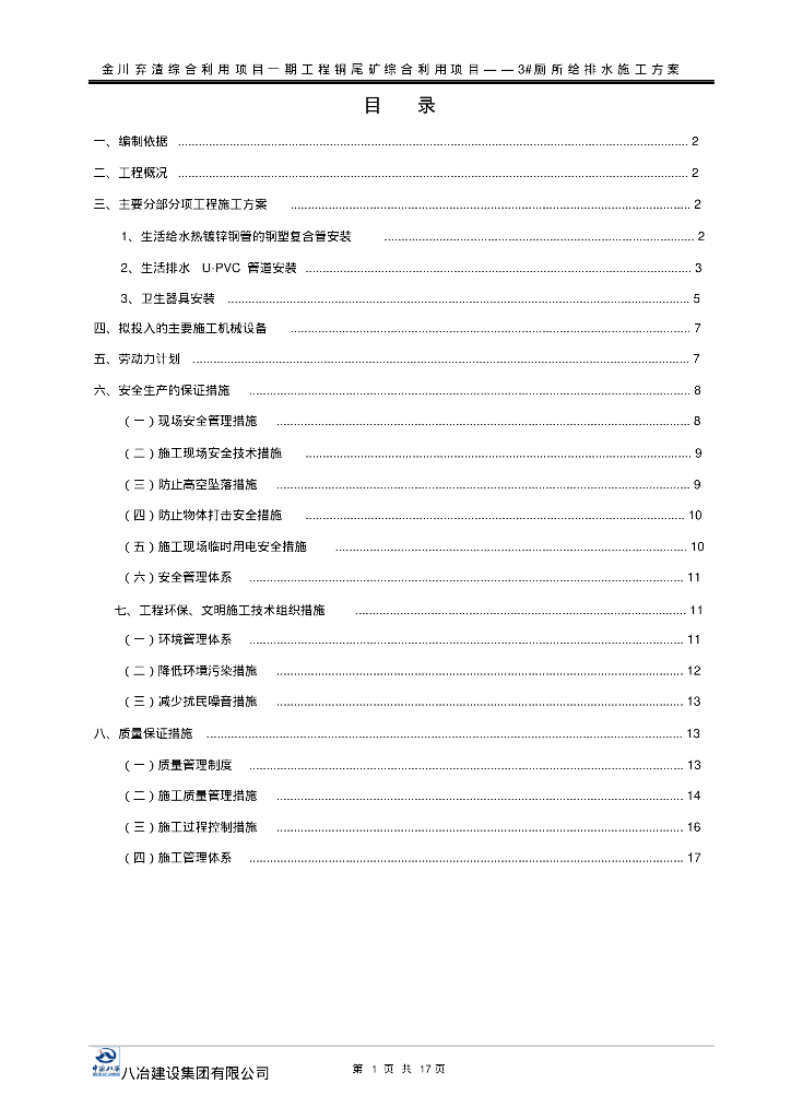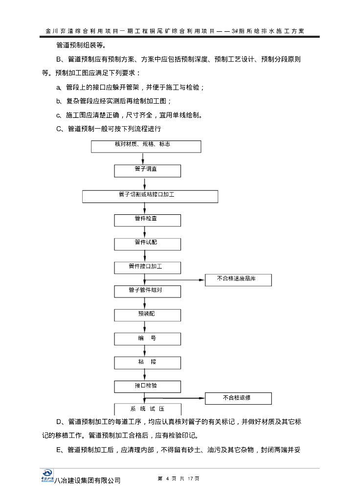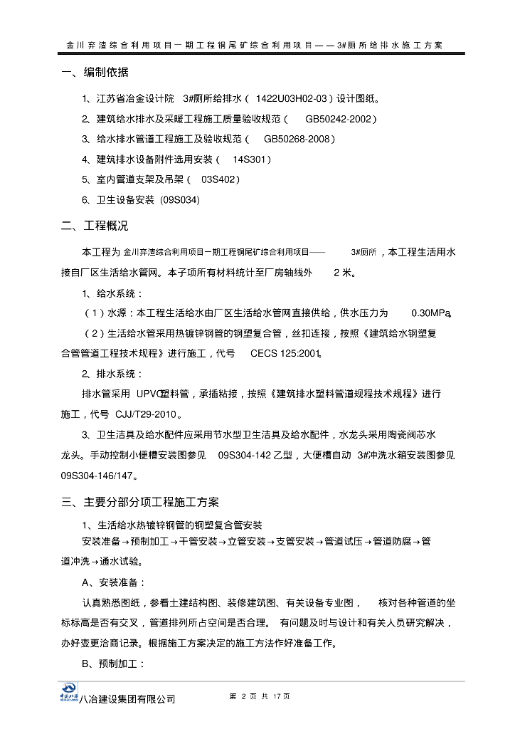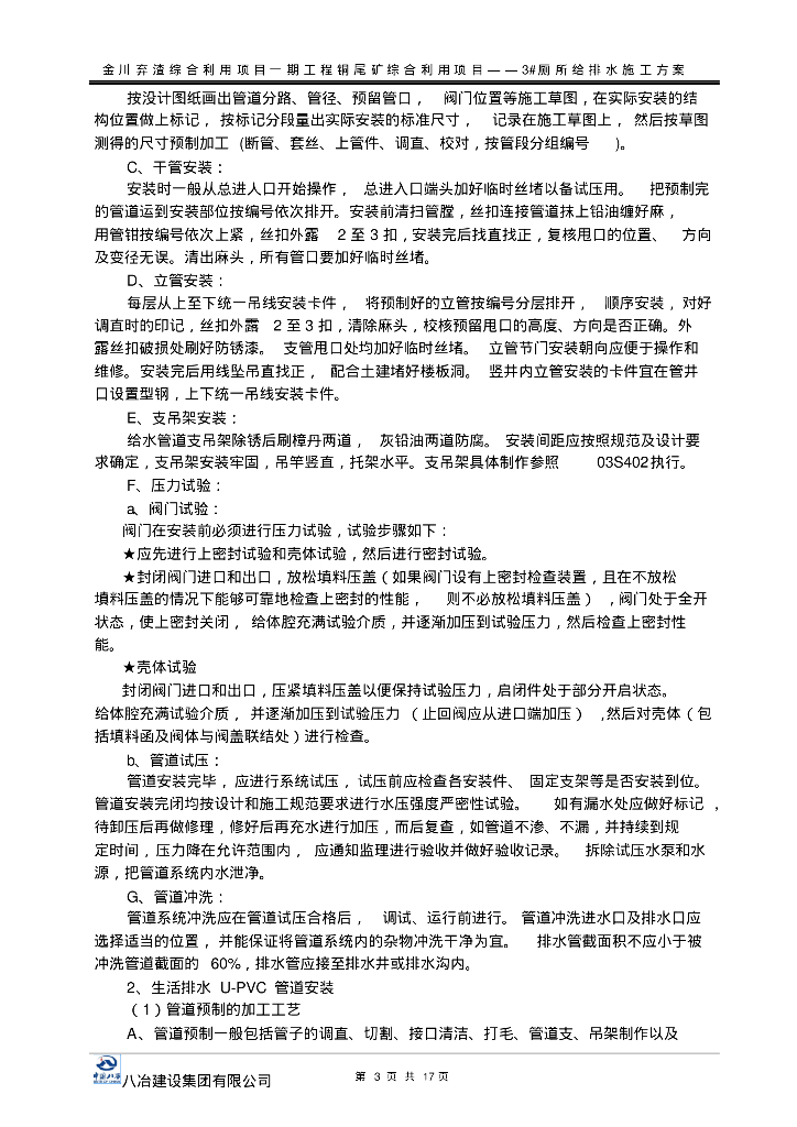 金川弃渣综合利用项目一期工程项目管道施工方案(生活给排水).pdf