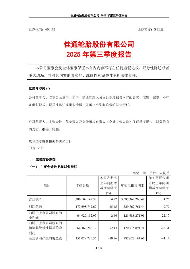 600182-S佳通:佳通轮胎股份有限公司2025年第三季度报告.pdf