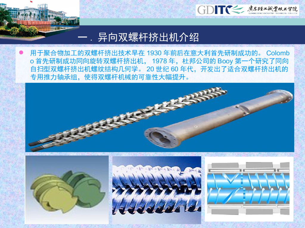 《塑料挤出成型》演示文稿-项目1 螺杆挤出造粒 单元6:异向双螺杆挤出机总体认识与技术进展.pdf