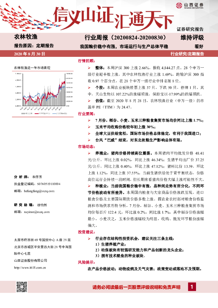 山西证券:农林牧渔行业周报:我国粮价稳中有涨,市场运行与生产总体平稳.pdf