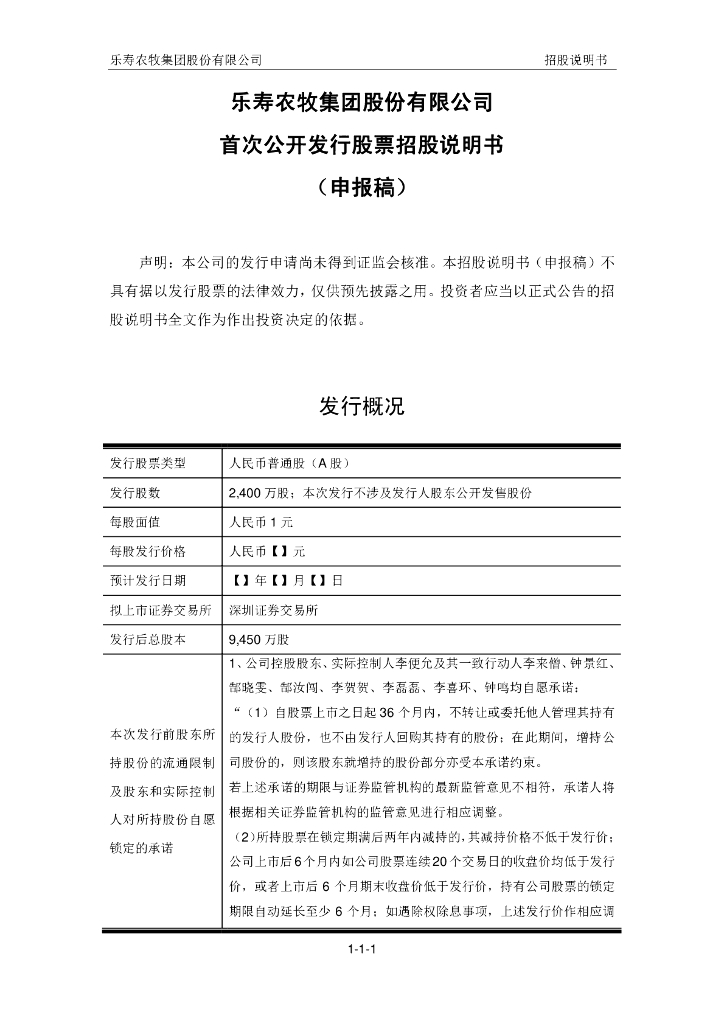 乐寿农牧集团股份有限公司深交所主板IPO上市招股说明书.pdf