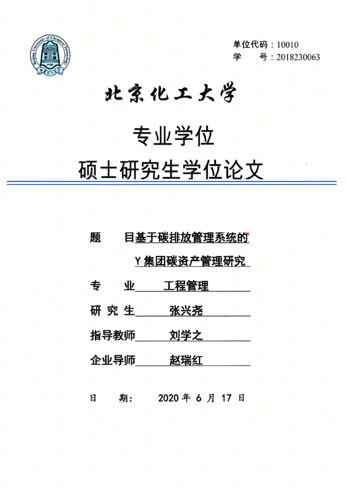 北京化工大学:基于碳排放管理系统的Y集团碳资产管理研究.pdf