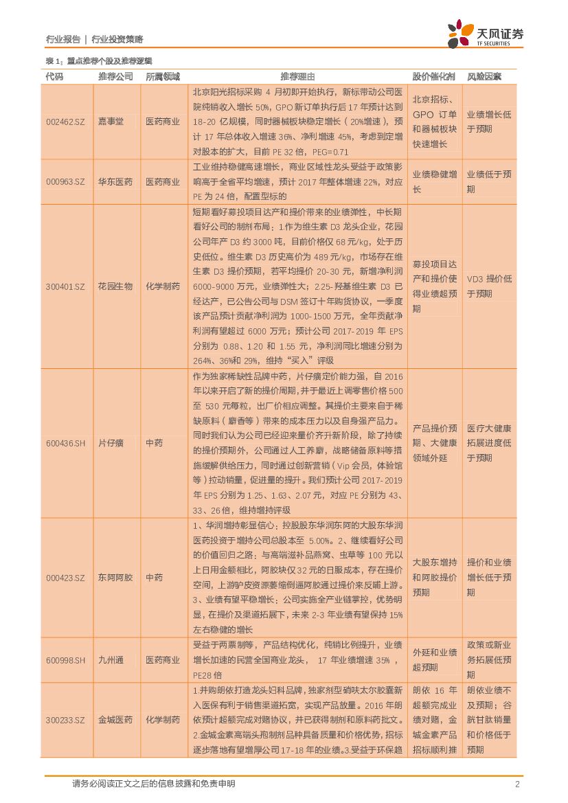 天风证券:医药生物行业投资策略:继续持有优质白马,精选原料药、OTC和流通龙头-“江嘉奥花”组合.pdf