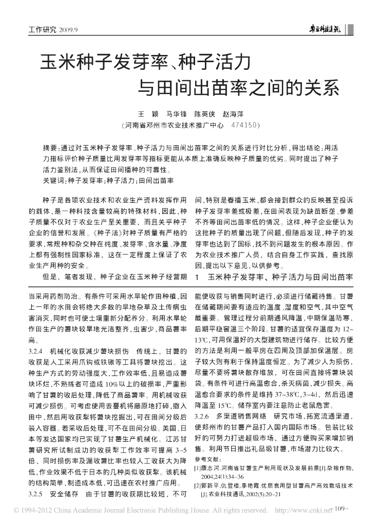 玉米种子发芽率_种子活力与田间出苗率之间的关系.pdf