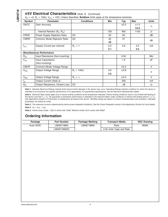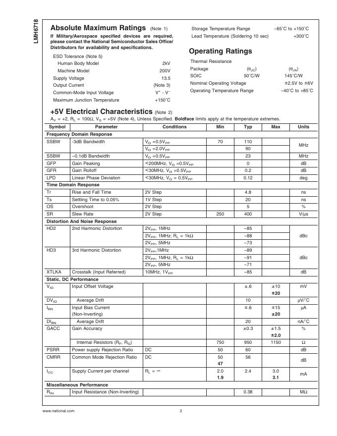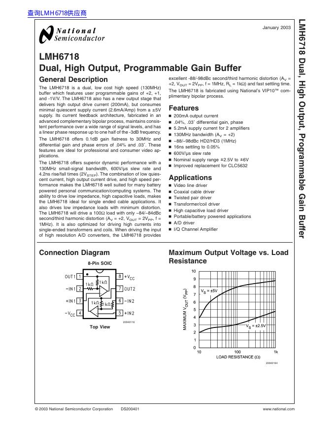 National Semiconductor LMH6718 Dual, High Output, Programmable Gain Buffer 数据手册.pdf