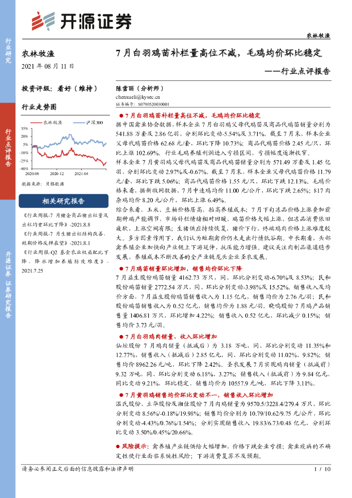 开源证券:农林牧渔行业点评报告:7月白羽鸡苗补栏量高位不减,毛鸡均价环比稳定.pdf
