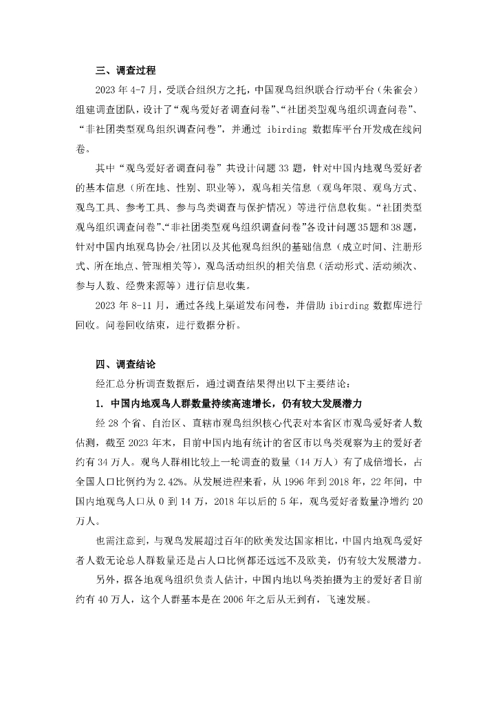 中国野生动物保护协会:2023年中国内地观鸟爱好者和观鸟组织本底调查简报.pdf