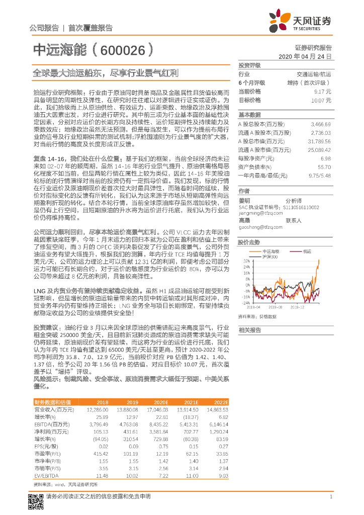 天风证券:中远海能(600026)-全球最大油运船东,尽享行业景气红利.pdf