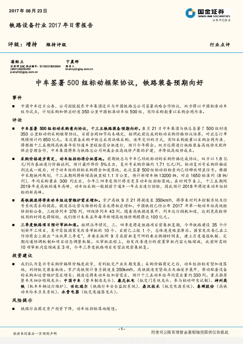 国金证券:铁路设备行业2017年日常报告:中车签署500组标动框架协议,铁路装备预期向好.pdf