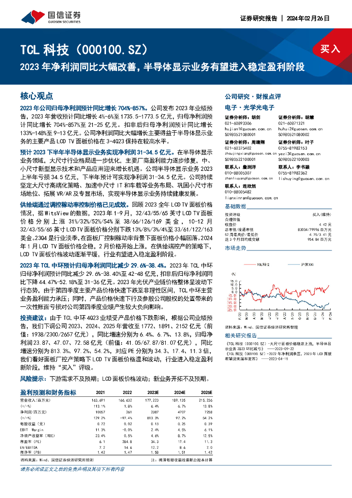 国信证券:TCL科技(000100)-2023年净利润同比大幅改善,半导体显示业务有望进入稳定盈利阶段.pdf
