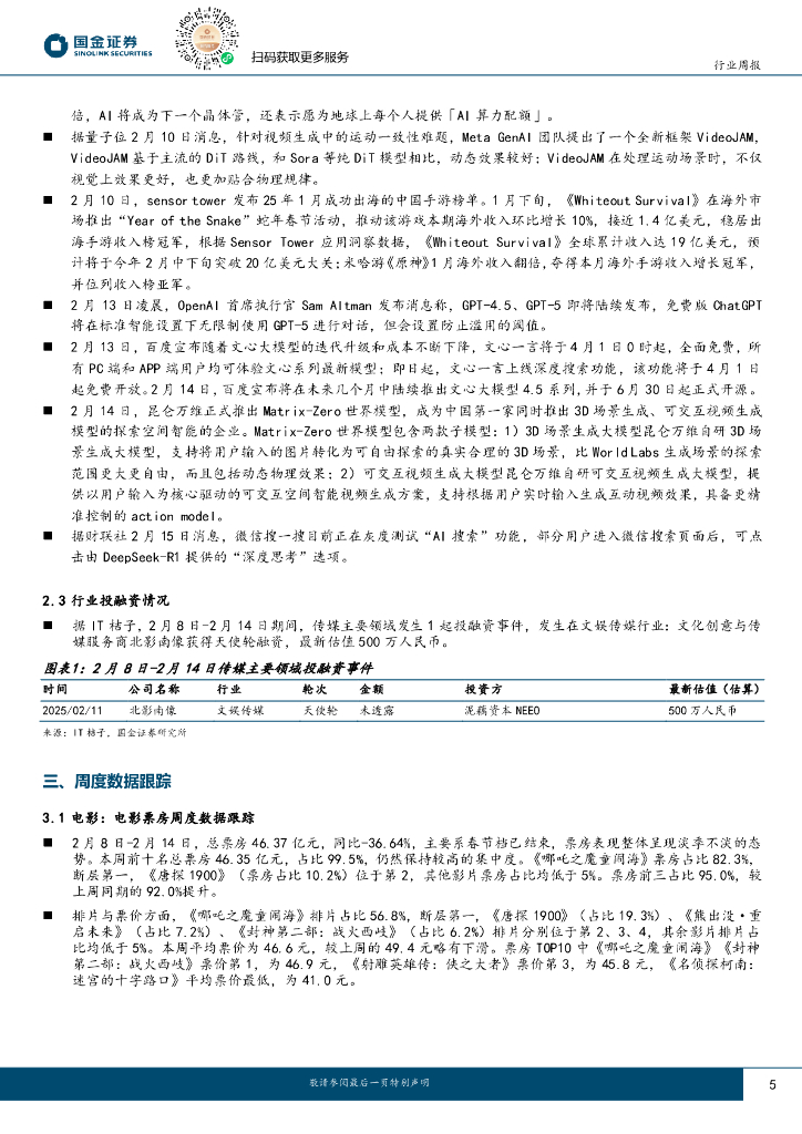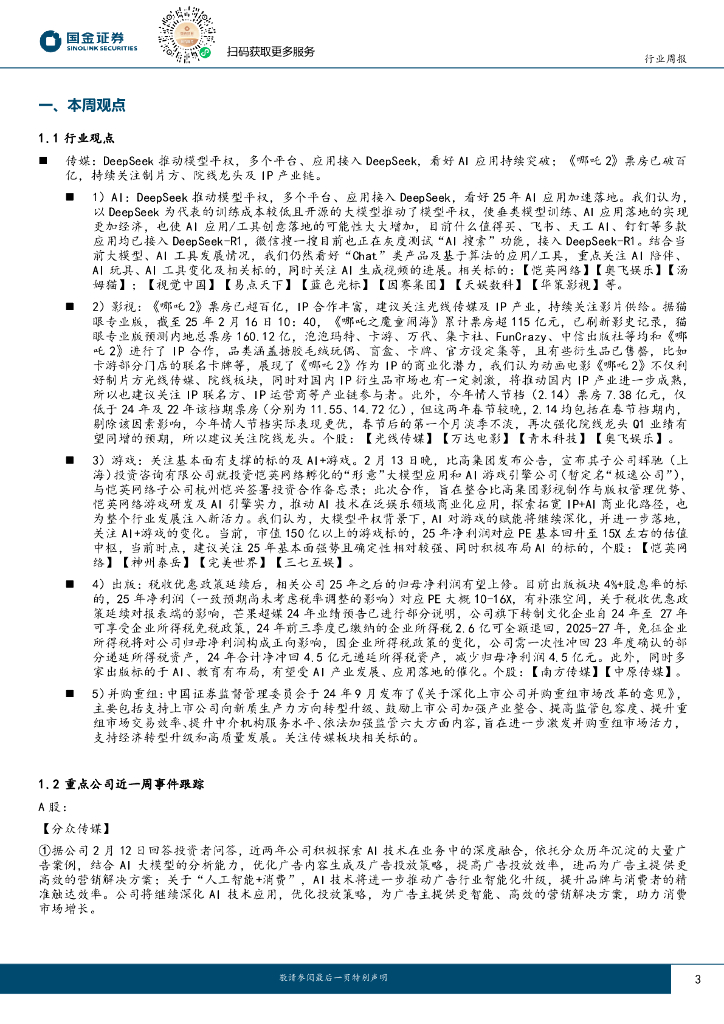 国金证券:传媒互联网产业行业周报:《哪吒2》票房超百亿,持续看好AI应用落地及IP产业链.pdf