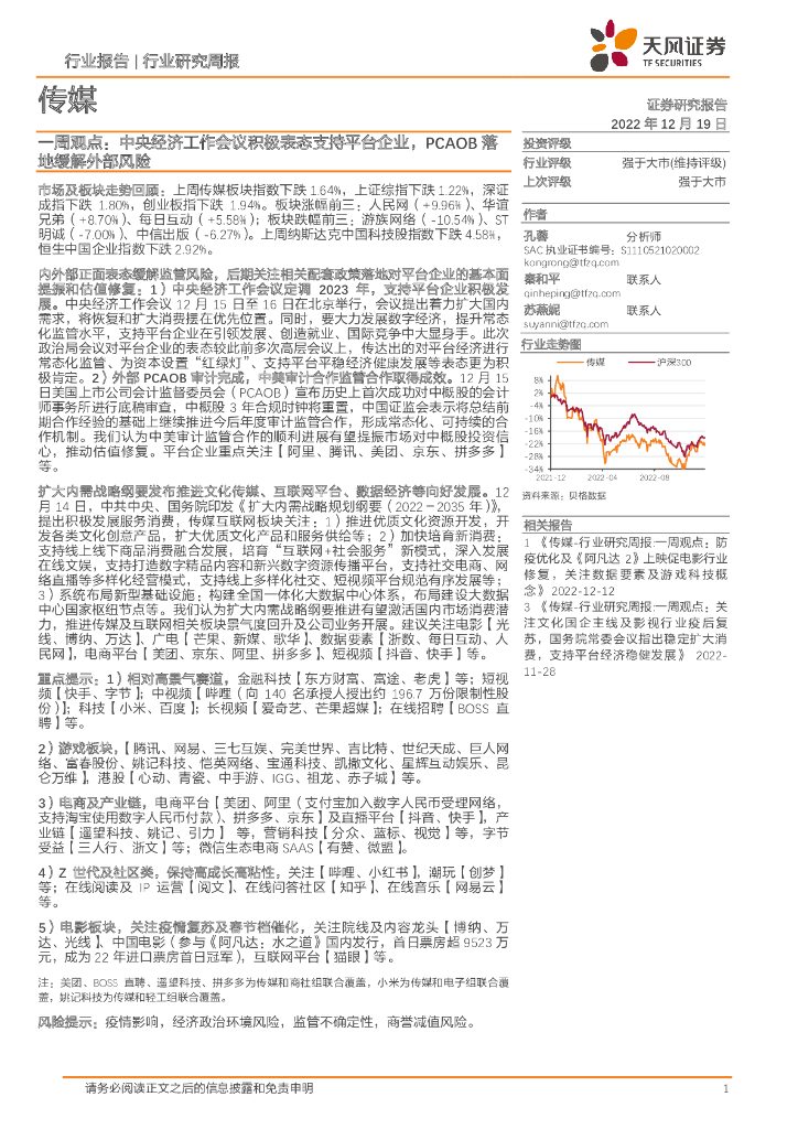 天风证券:传媒一周观点:中央经济工作会议积极表态支持平台企业,PCAOB落地缓解外部风险.pdf