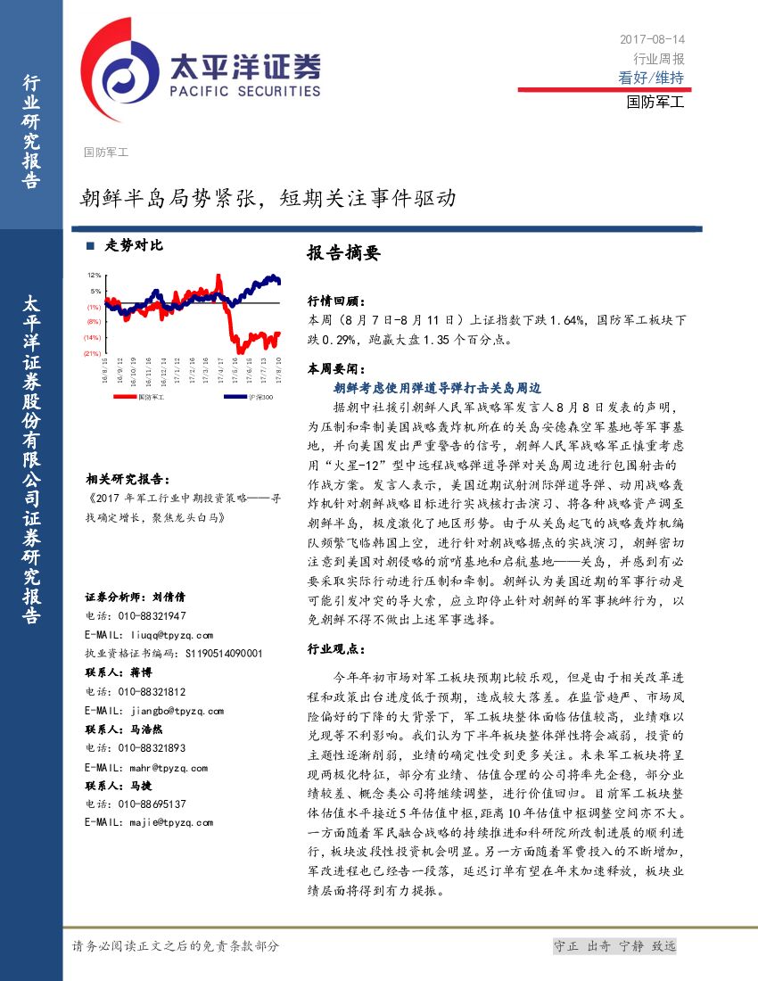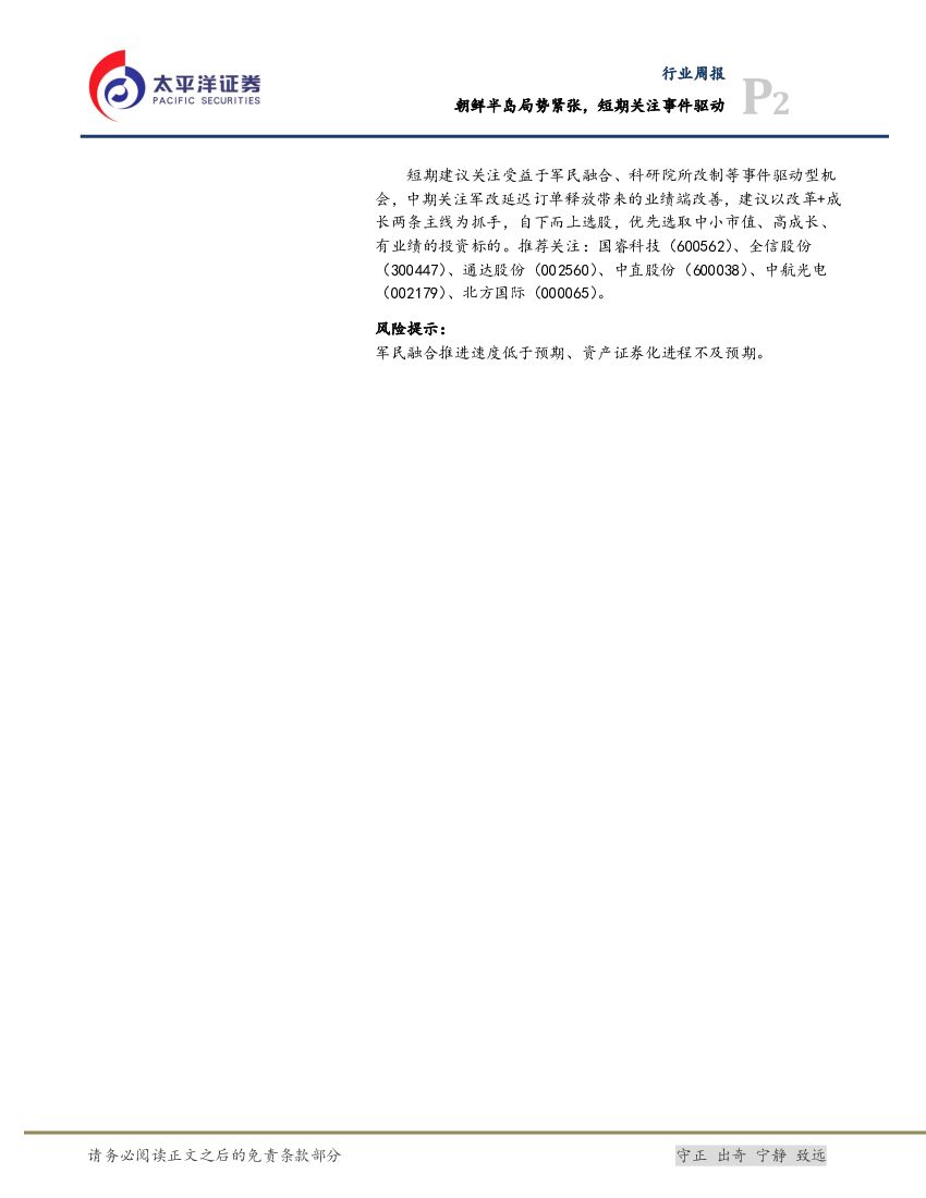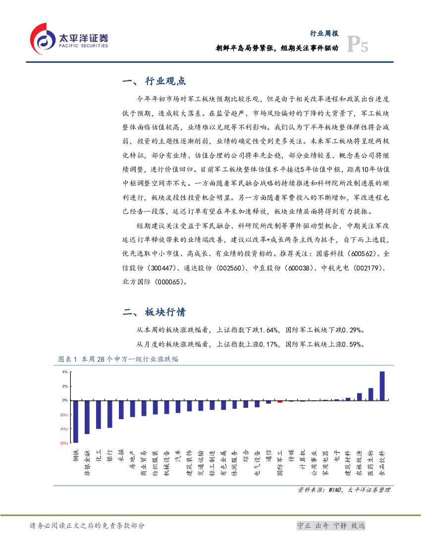 太平洋证券:国防军工行业周报:朝鲜半岛局势紧张,短期关注事件驱动.pdf