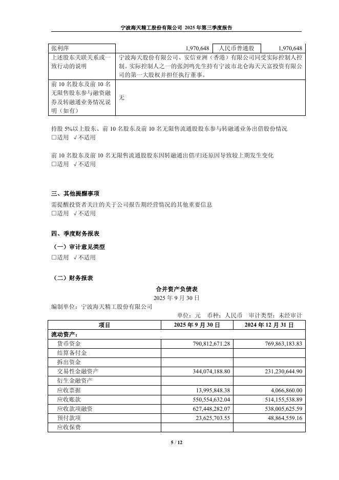 601882-海天精工:宁波海天精工股份有限公司2025年第三季度报告.pdf
