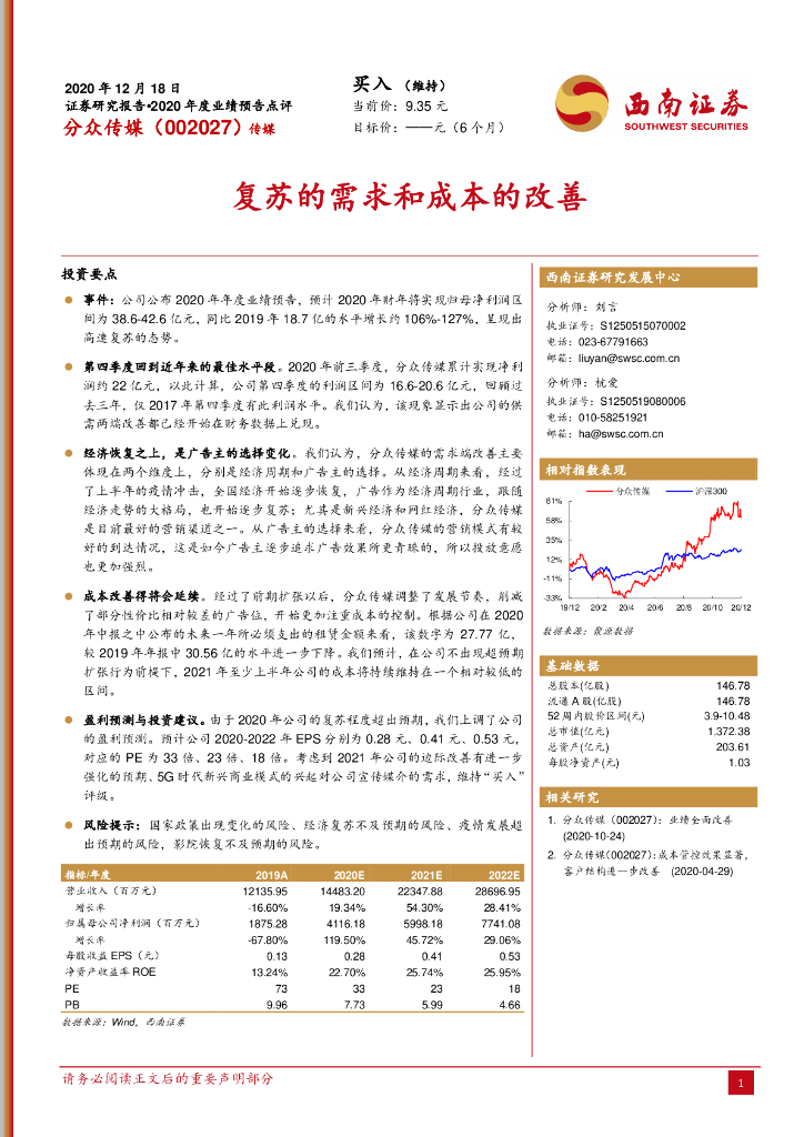 西南证券:分众传媒(002027)-复苏的需求和成本的改善.pdf