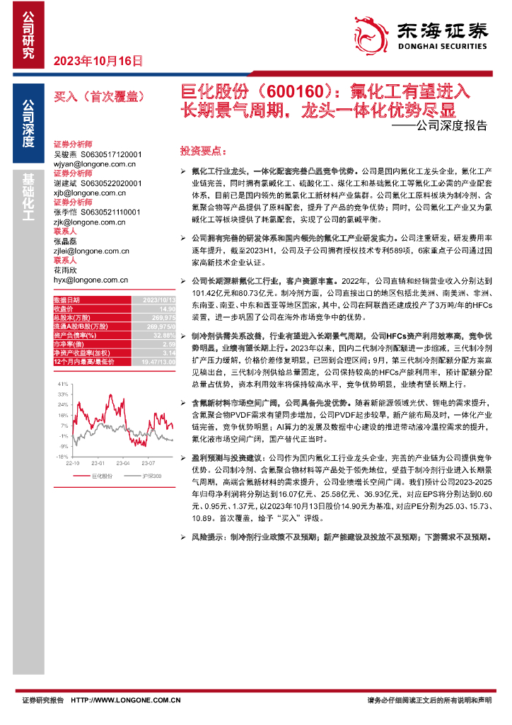 东海证券:巨化股份(600160)-公司深度报告:氟化工有望进入长期景气周期,龙头一体化优势尽显.pdf