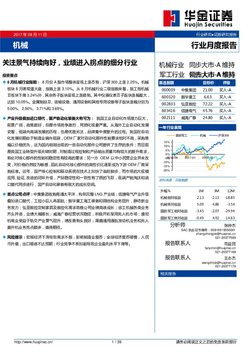 华金证券:机械行业月度报告:关注景气持续向好,业绩进入拐点的细分行业.pdf