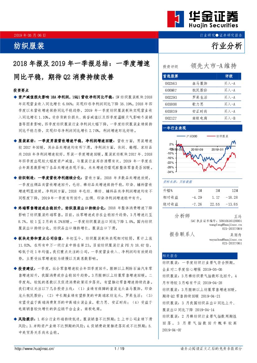 华金证券:纺织服装行业2018年报及2019年一季报总结:一季度增速同比平稳,期待Q2消费持续改善.pdf