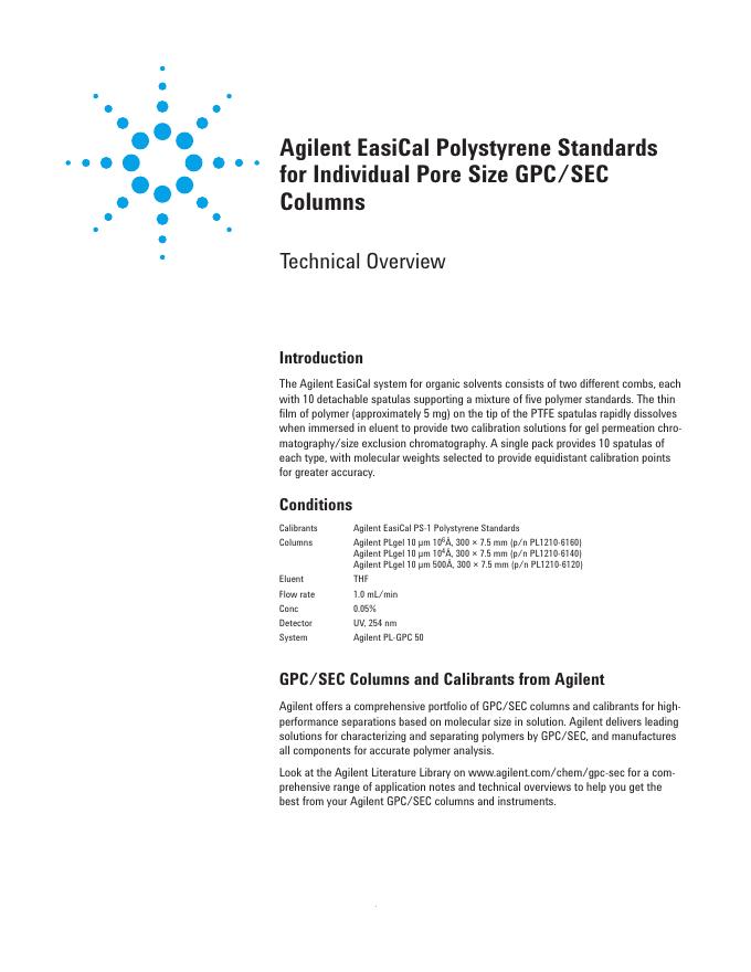 Agilent EasiCal Polystyrene Standards for Individual Pore Size GPC/SEC Columns 技术手册.pdf