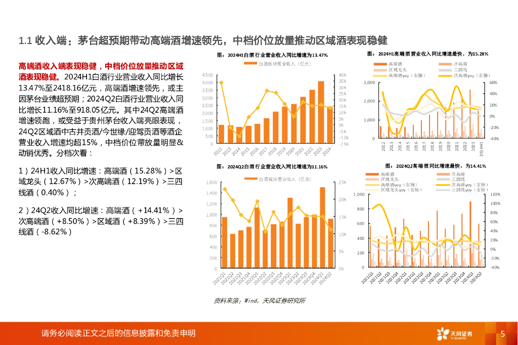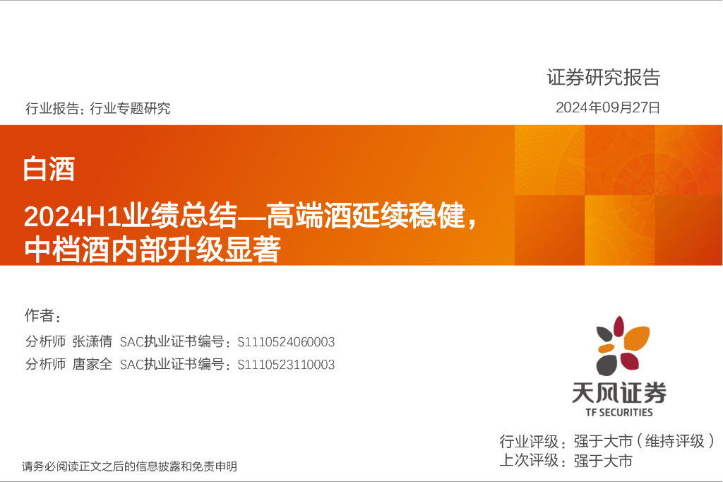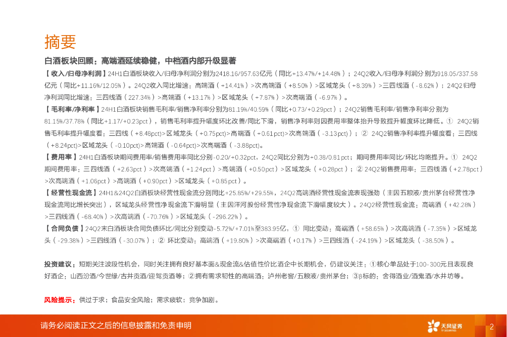 天风证券:白酒2024H1业绩总结:高端酒延续稳健,中档酒内部升级显著.pdf