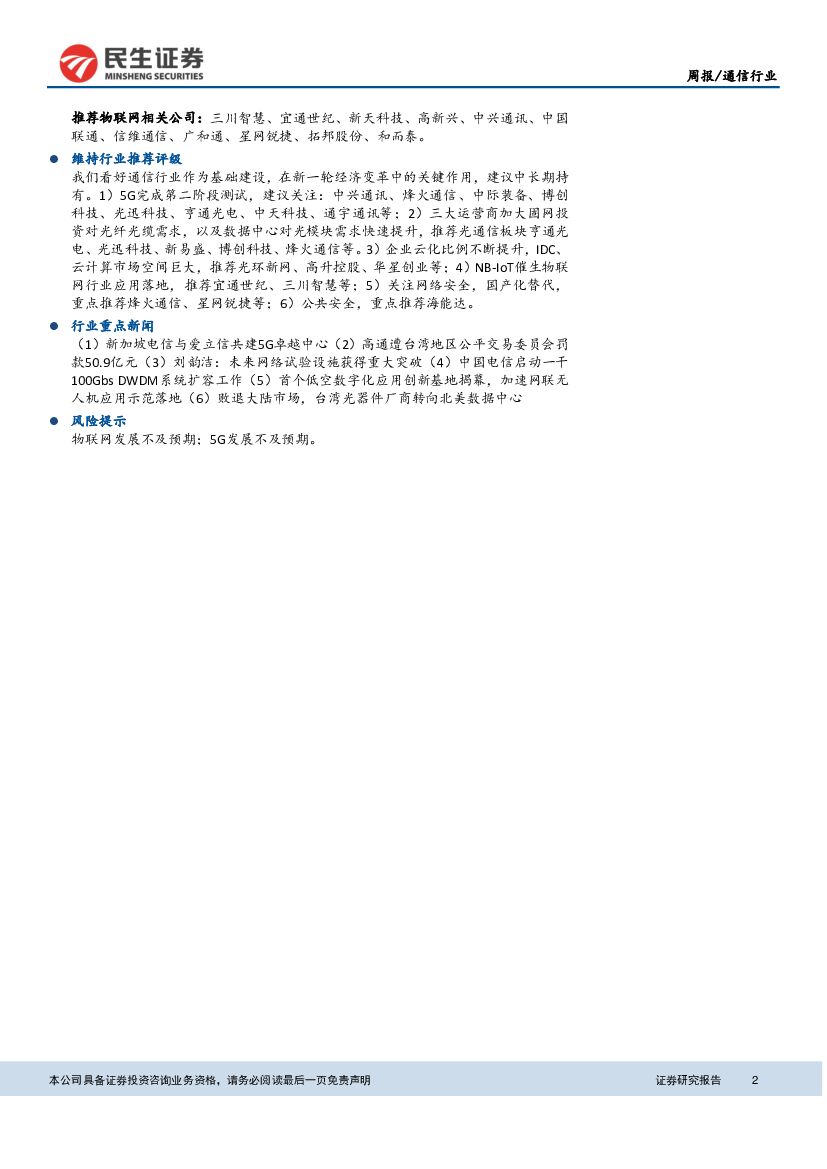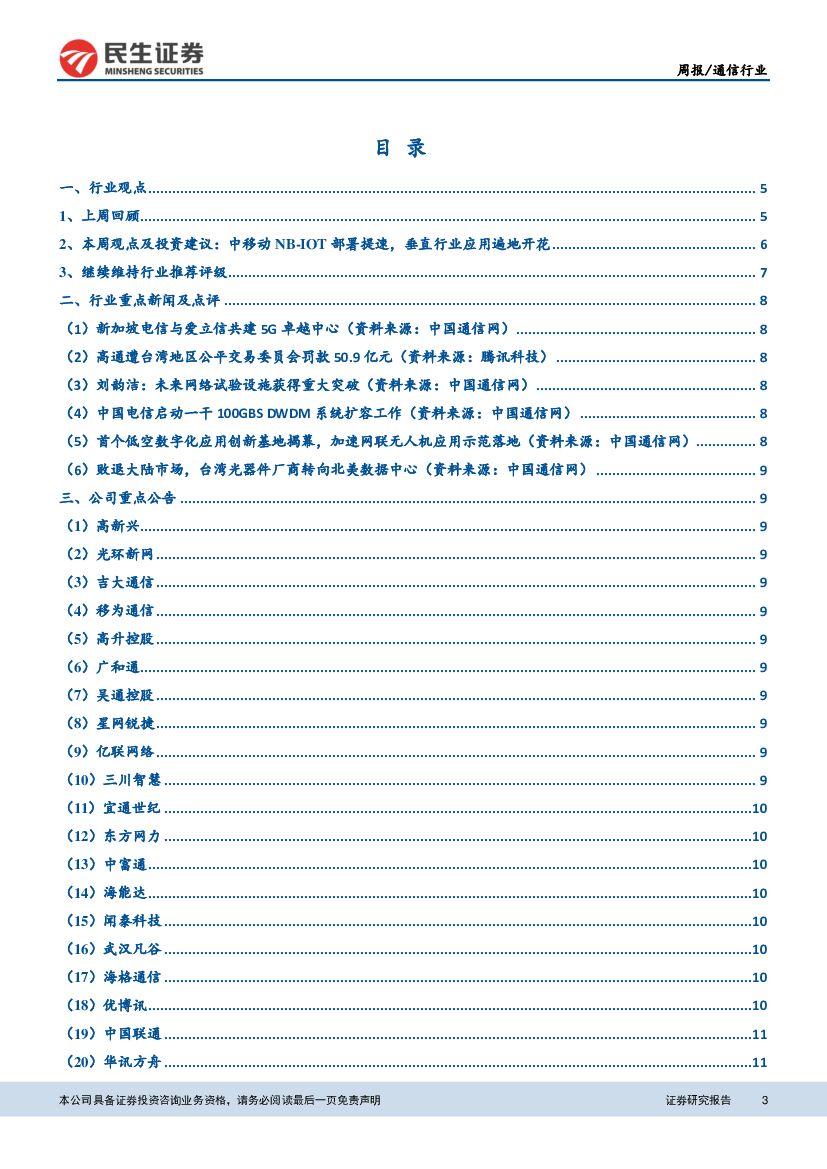 民生证券:通信行业周报:中移动NB-IoT部署提速,垂直行业应用遍地开花.pdf