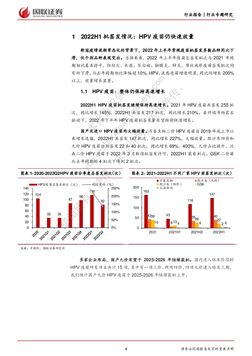国联证券:医药生物:2022上半年疫苗批签发及研发进展分析报告.pdf