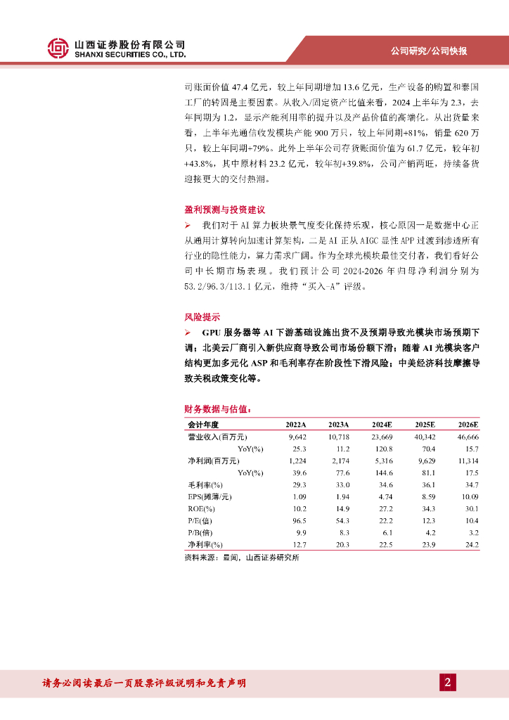 山西证券:中际旭创(300308)-全球高速光模块最佳交付者,持续扩产迎接更高的AI浪潮公司研究/公司快报.pdf