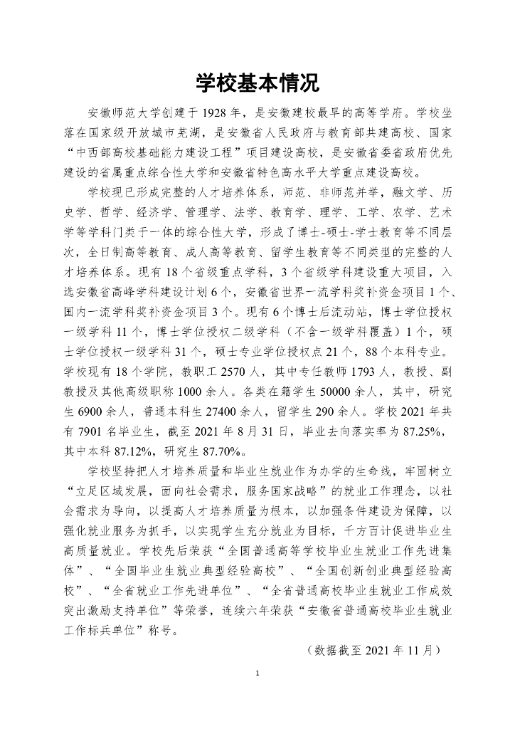 安徽师范大学2021年毕业生就业质量年度报告.pdf