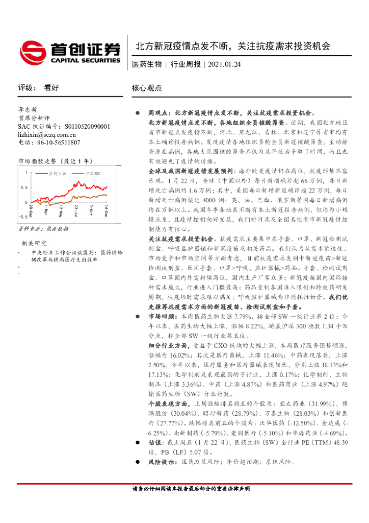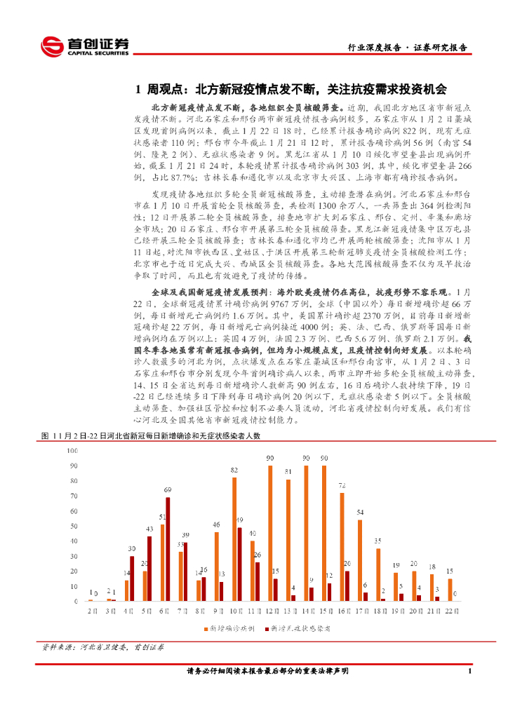 首创证券:医药生物行业周报:北方新冠疫情点发不断,关注抗疫需求投资机会.pdf