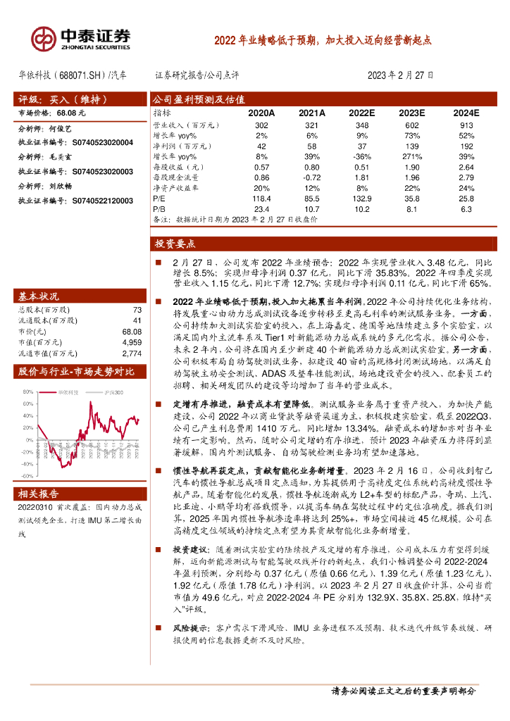 中泰证券:华依科技(688071)-2022年业绩略低于预期,加大投入迈向经营新起点.pdf