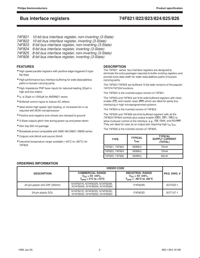 飞利浦 74F821/822/823/824/825/826 Bus interface registers 数据手册.pdf