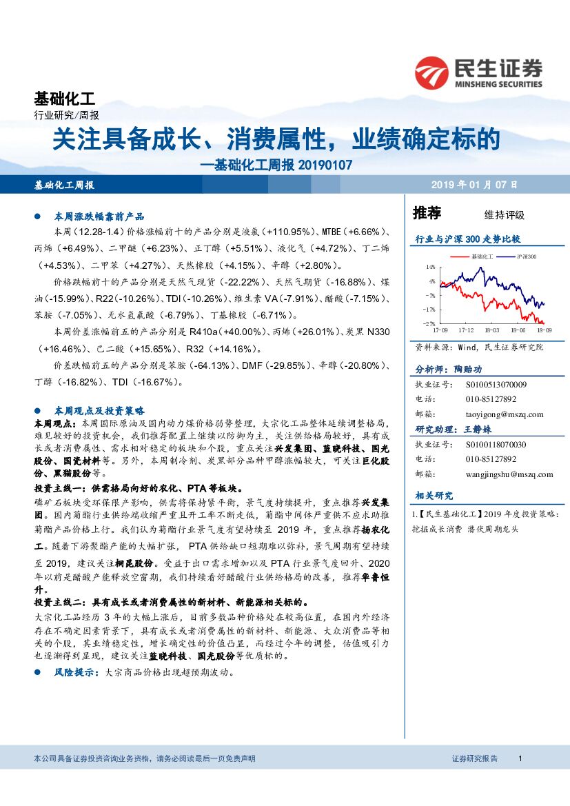 民生证券:基础化工周报:关注具备成长、消费属性,业绩确定标的.pdf