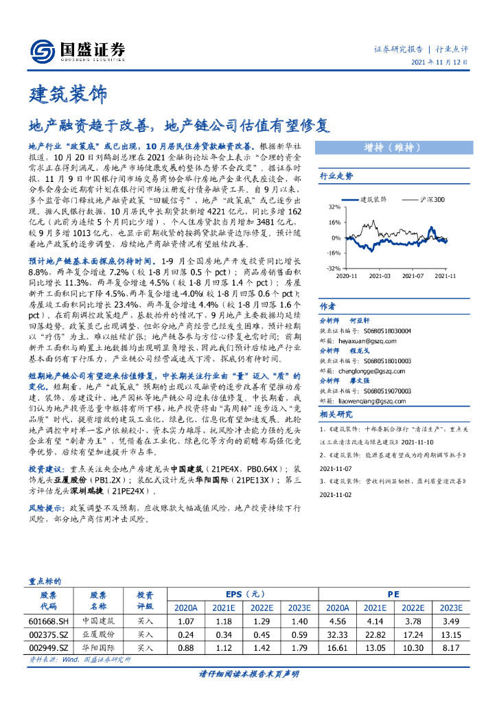 国盛证券:建筑装饰:地产融资趋于改善,地产链公司估值有望修复.pdf
