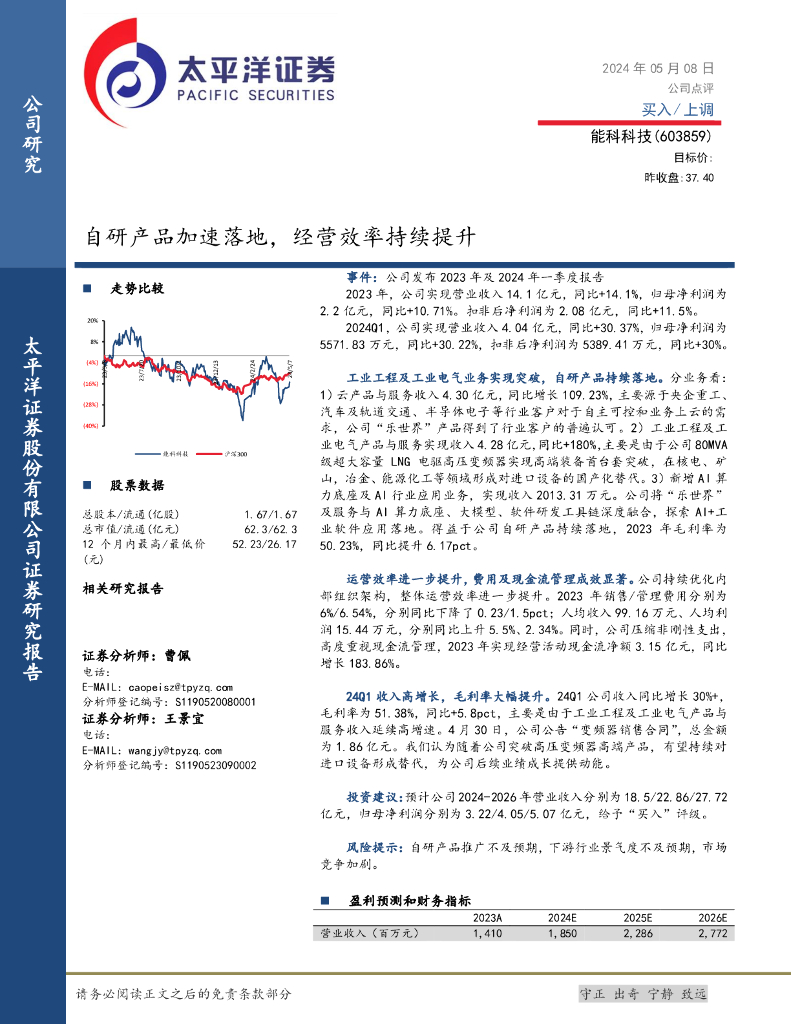 太平洋证券:能科科技(603859)-自研产品加速落地,经营效率持续提升.pdf