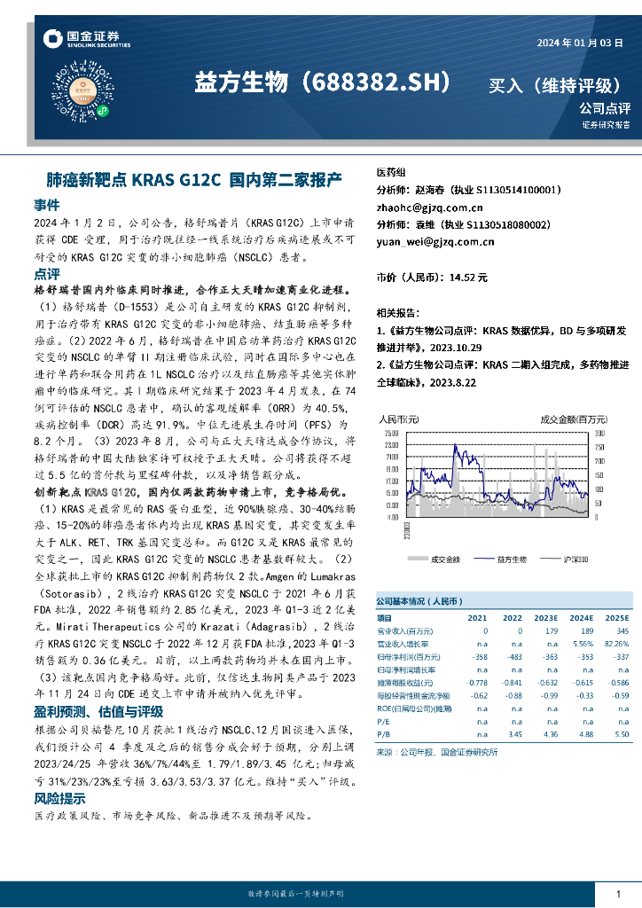 国金证券:益方生物(688382)-肺癌新靶点KRAS G12C国内第二家报产.pdf