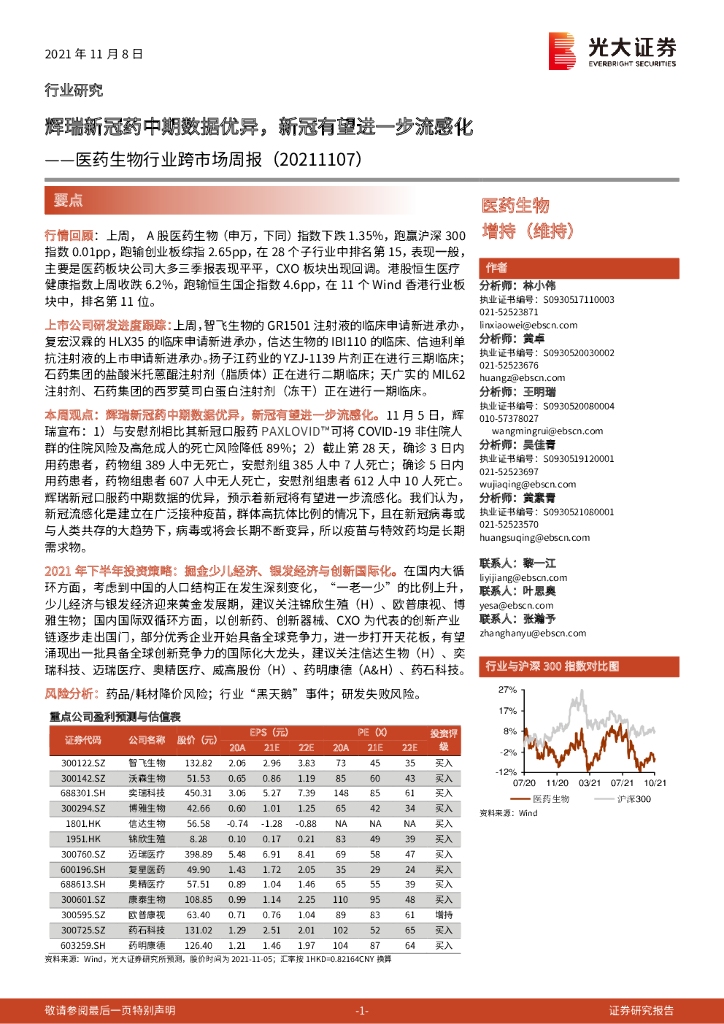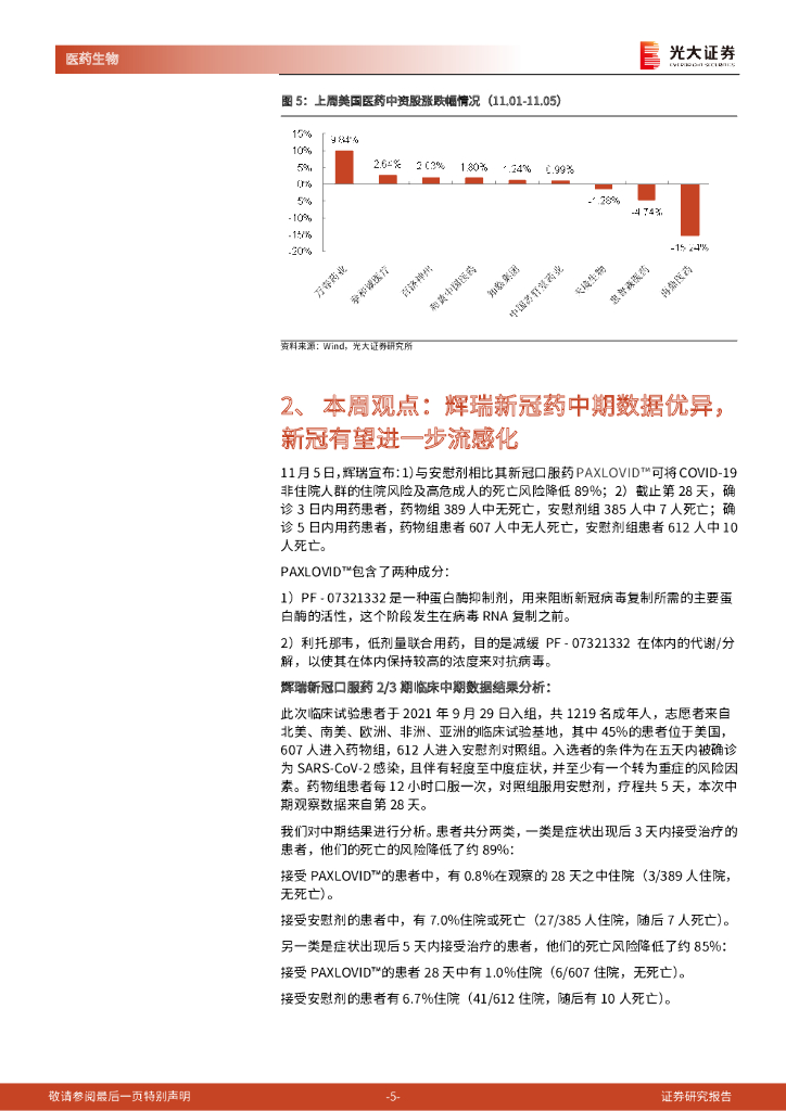光大证券:医药生物行业跨市场周报:辉瑞新冠药中期数据优异,新冠有望进一步流感化.pdf
