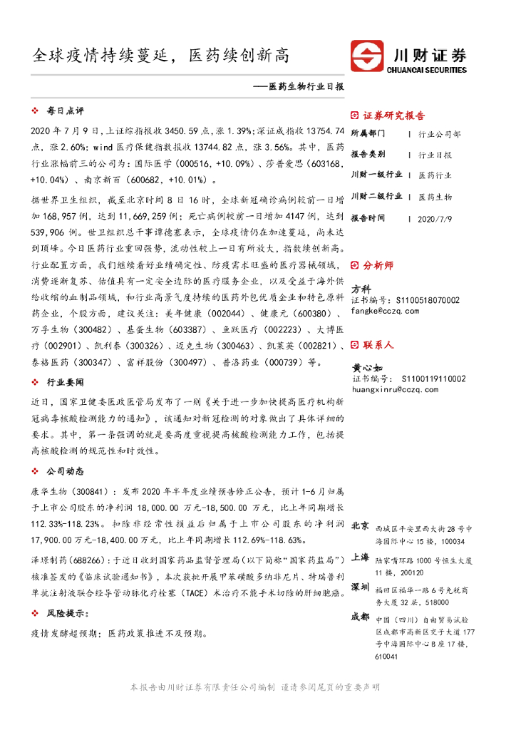 川财证券:医药生物行业日报:全球疫情持续蔓延,医药续创新高.pdf