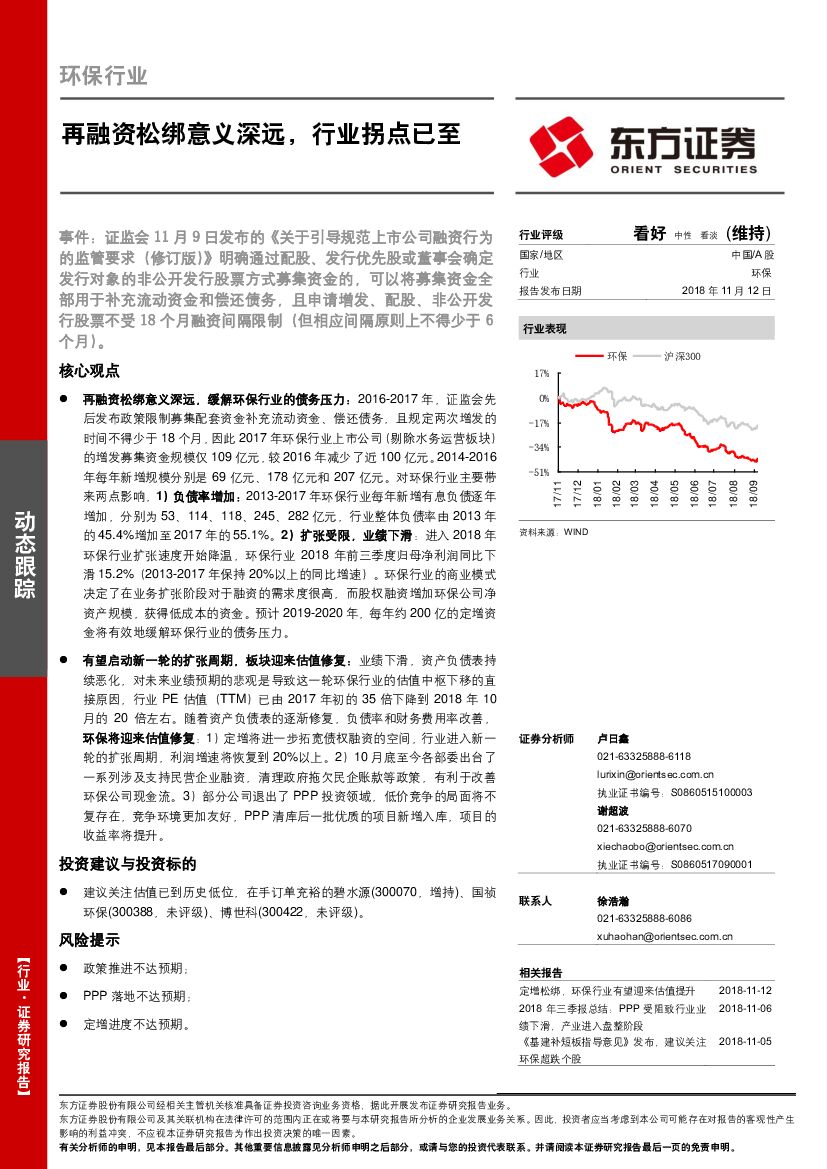 东方证券:环保行业动态跟踪:再融资松绑意义深远,行业拐点已至.pdf
